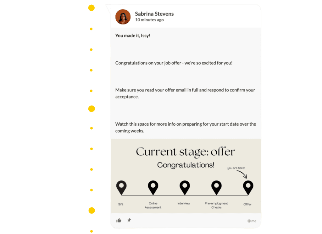 A mobile-optimised, social-style platform offers engaging, branded content and 24/7 support, keeping candidates connected.